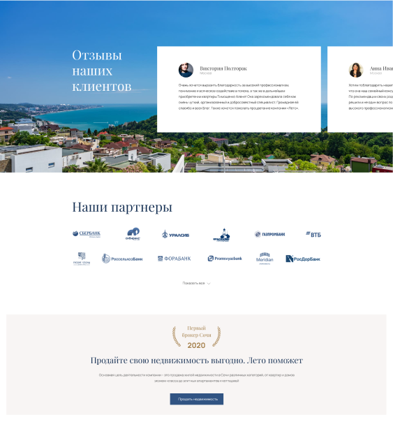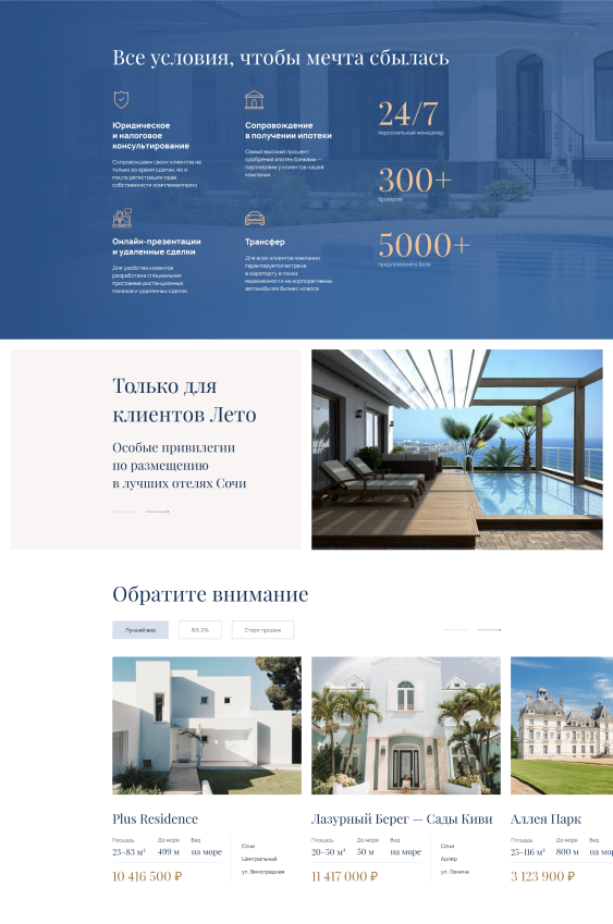 Онлайн-каталог элитной недвижимости у моря для компании ЛЕТО недвижимость