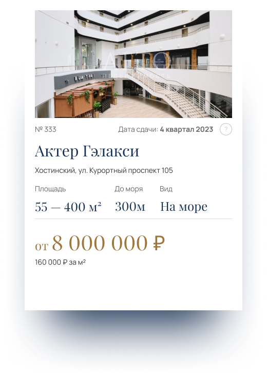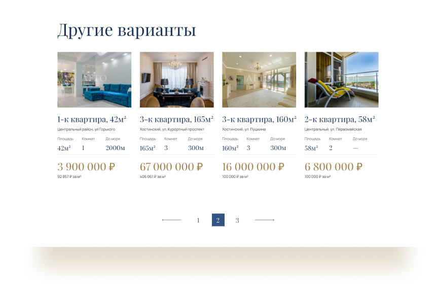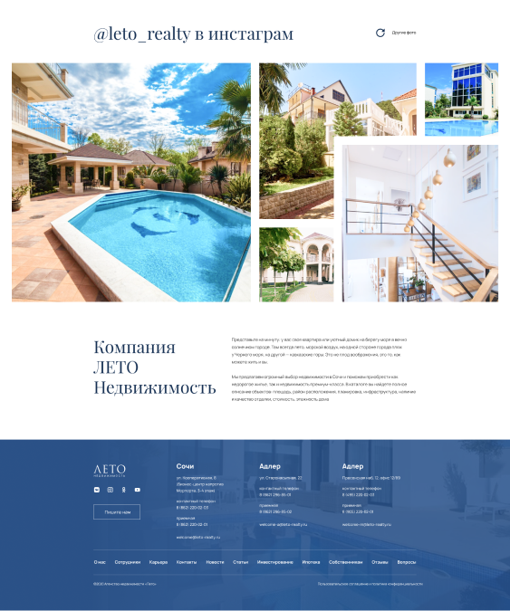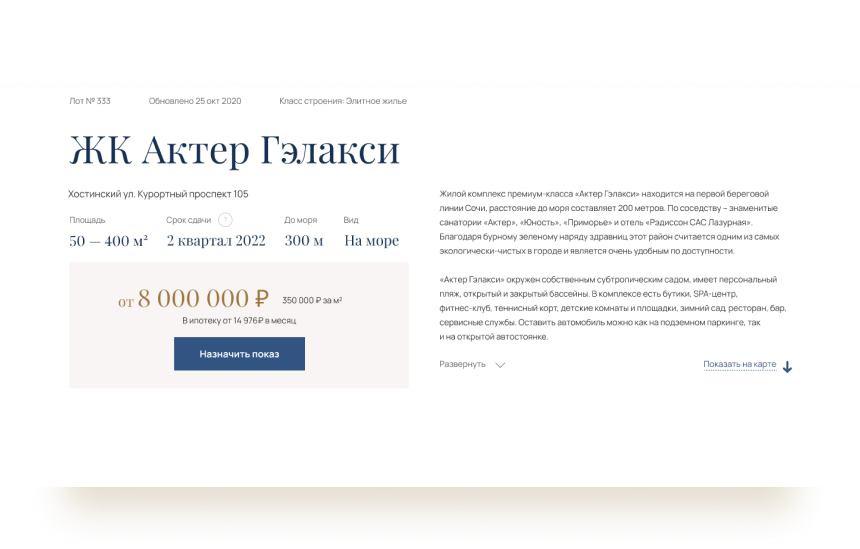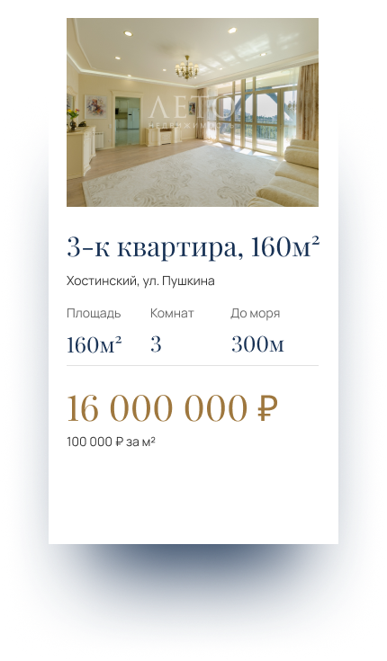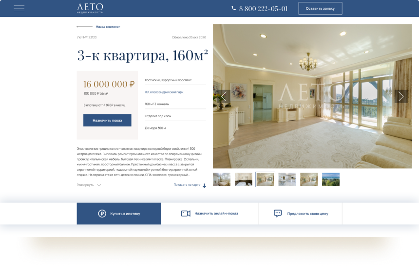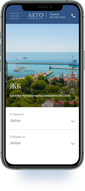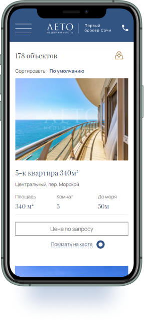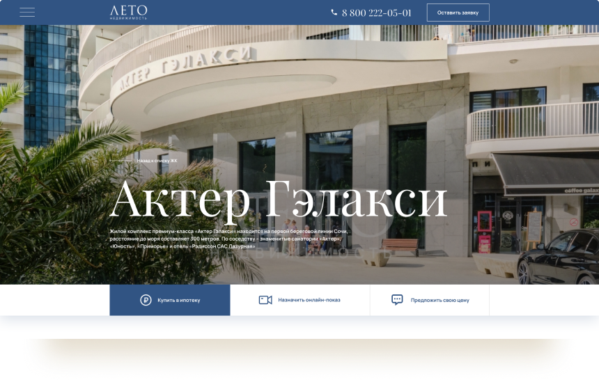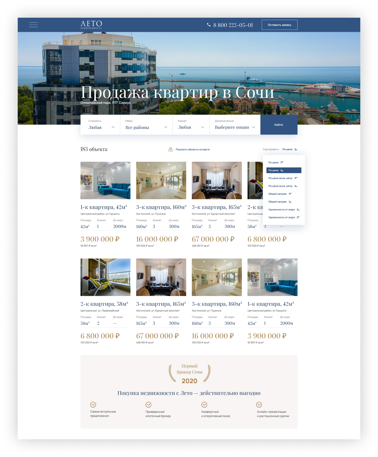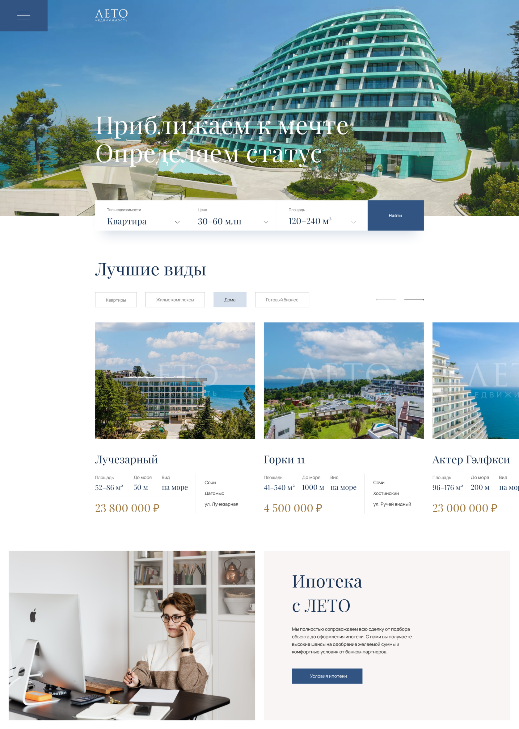 Онлайн-каталог элитной недвижимости у моря для компании ЛЕТО недвижимость