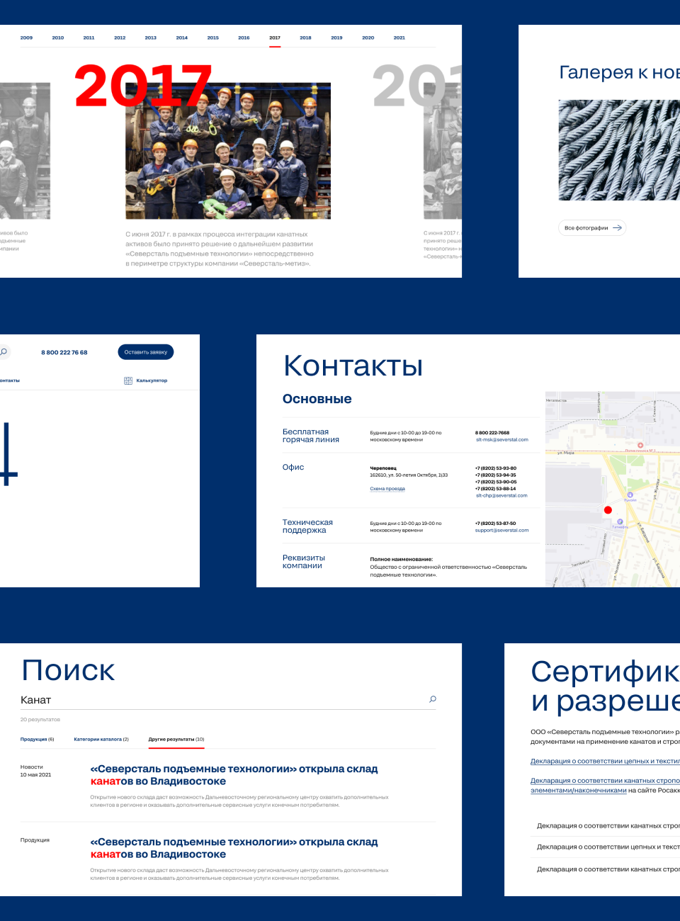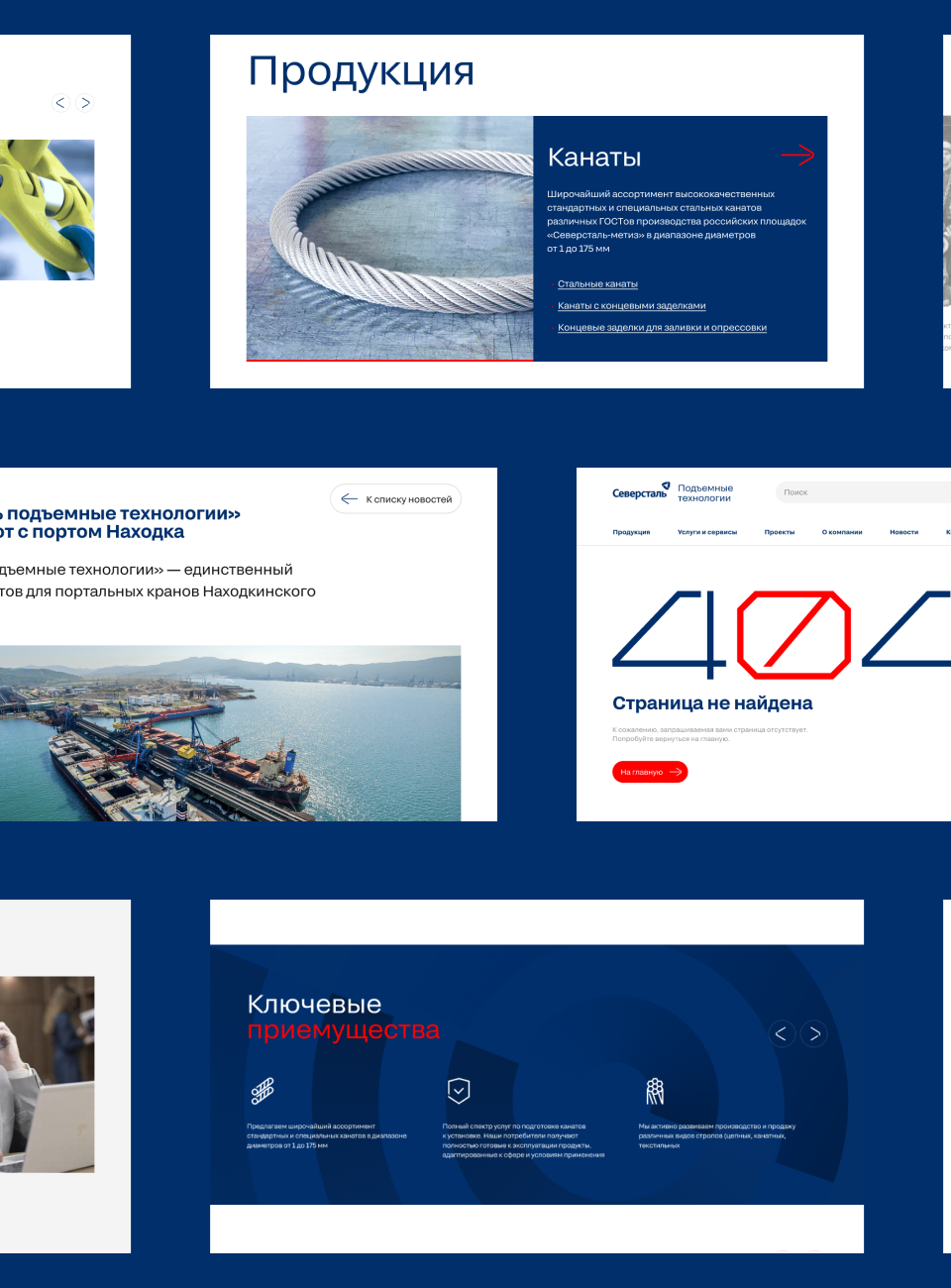 В задачи проекта входило обновить корпоративный сайт дочерней компании ПАО «Северсталь» – «Северсталь подъёмные технологии», которая специализируется на продаже стальных канатов, а также грузоподъёмных стропов и изделий из стальных канатов собственного производства