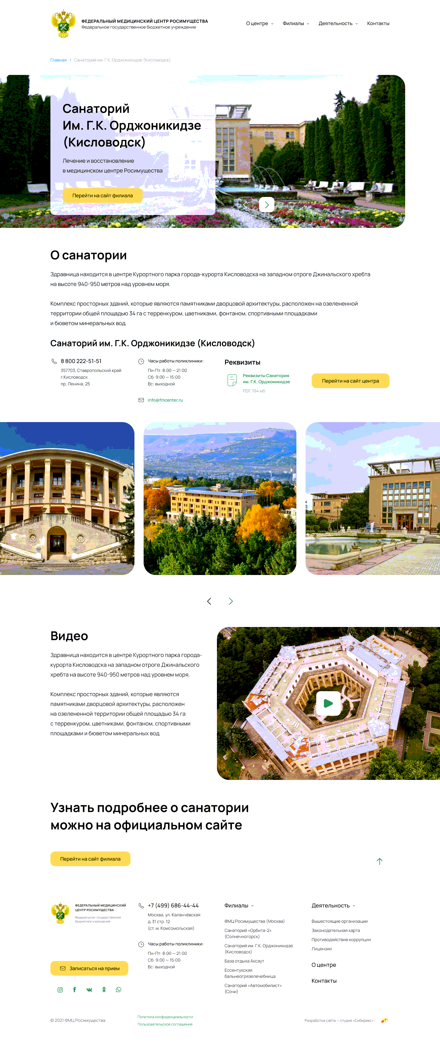 ФГБУ «Федеральный медицинский центр» Росимущества — медицинский центр с пятью санаторно-курортными и оздоровительными подразделениями в разных климатических зонах: от Москвы до Сочи.