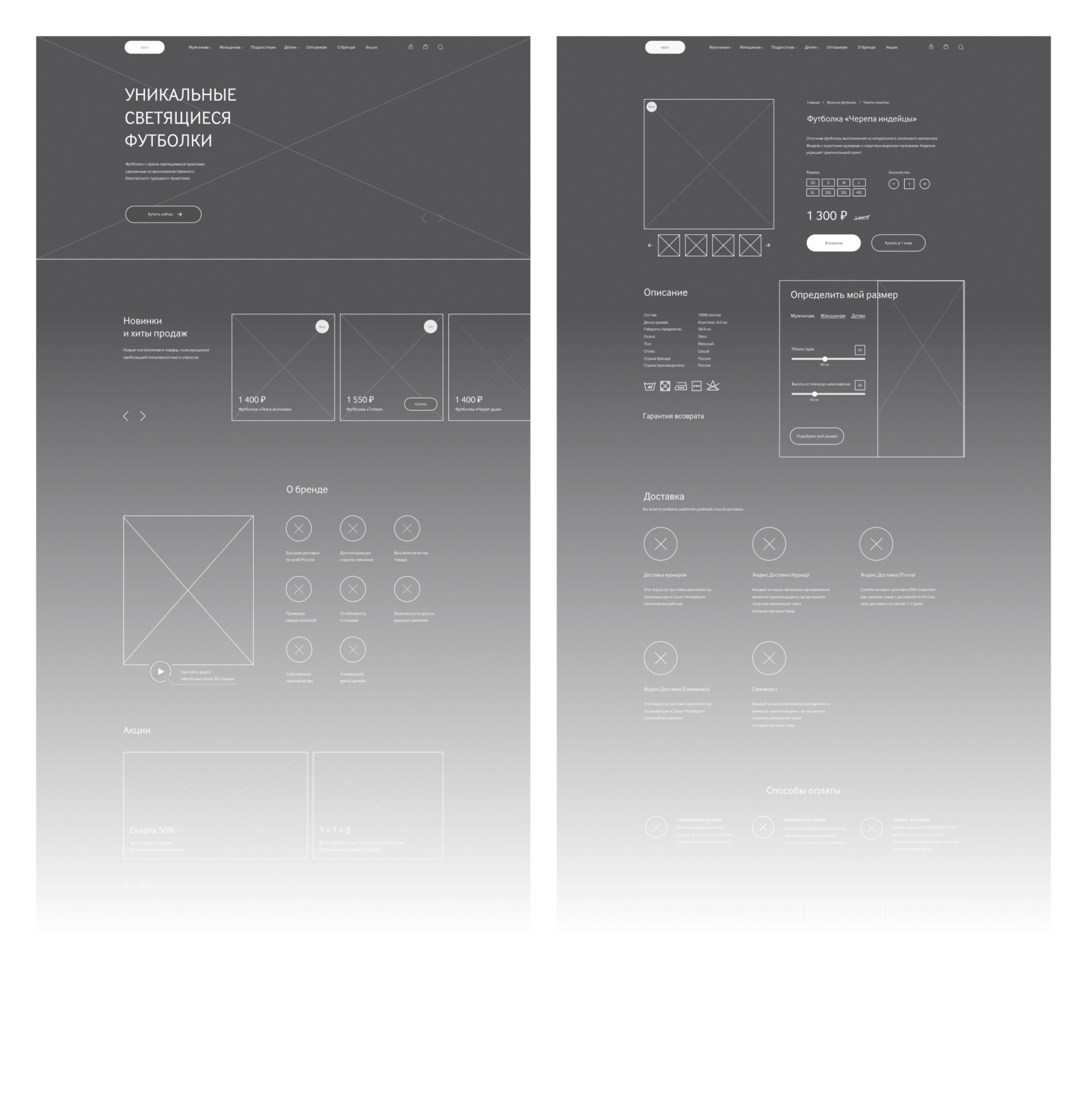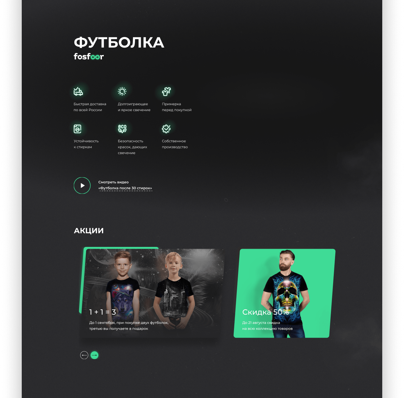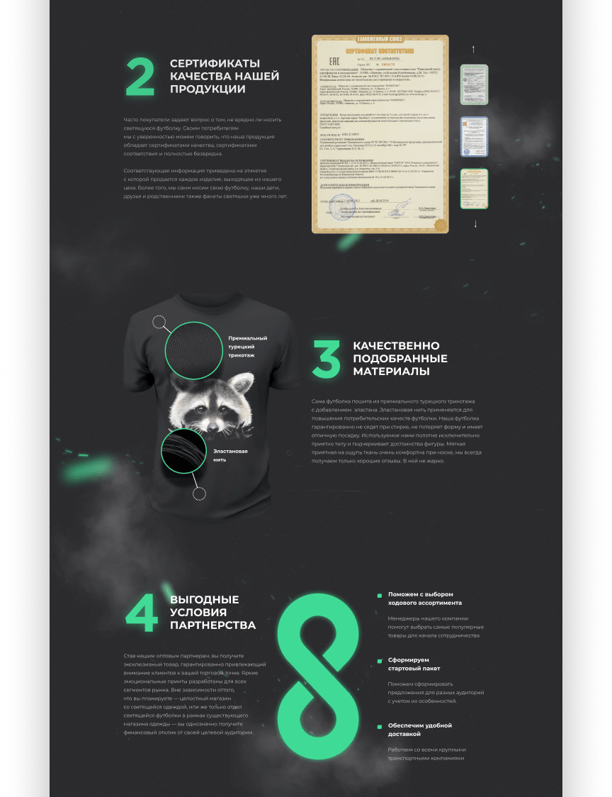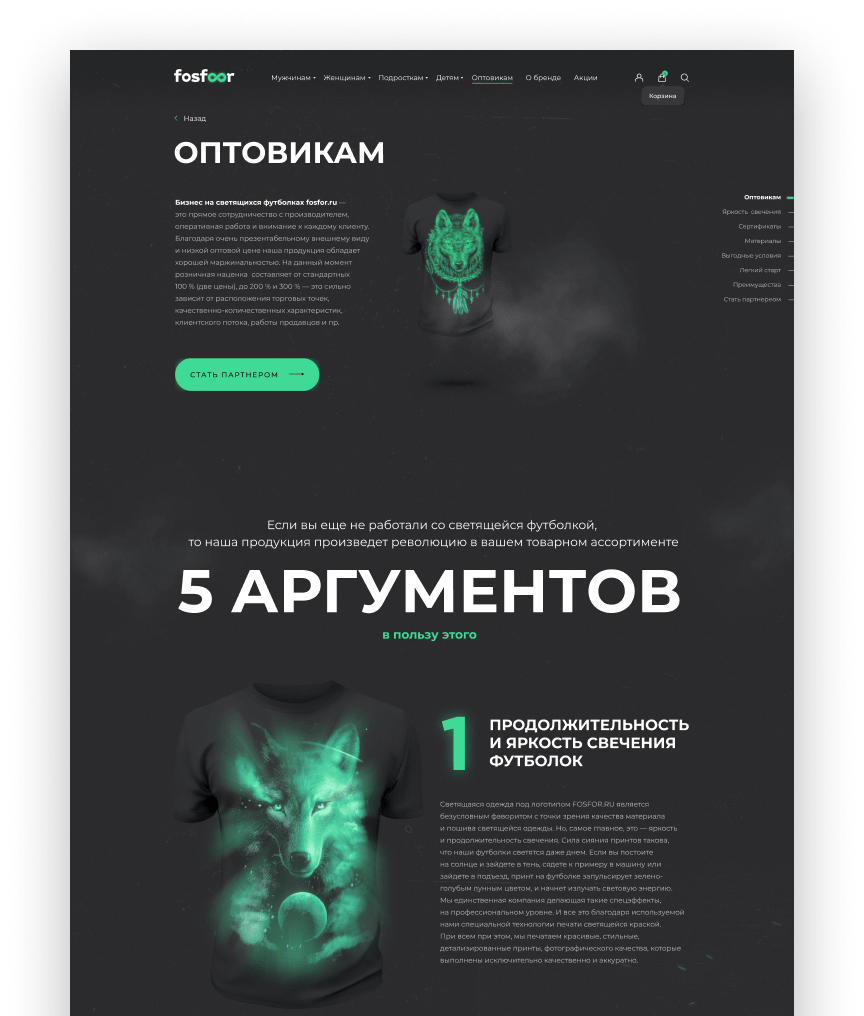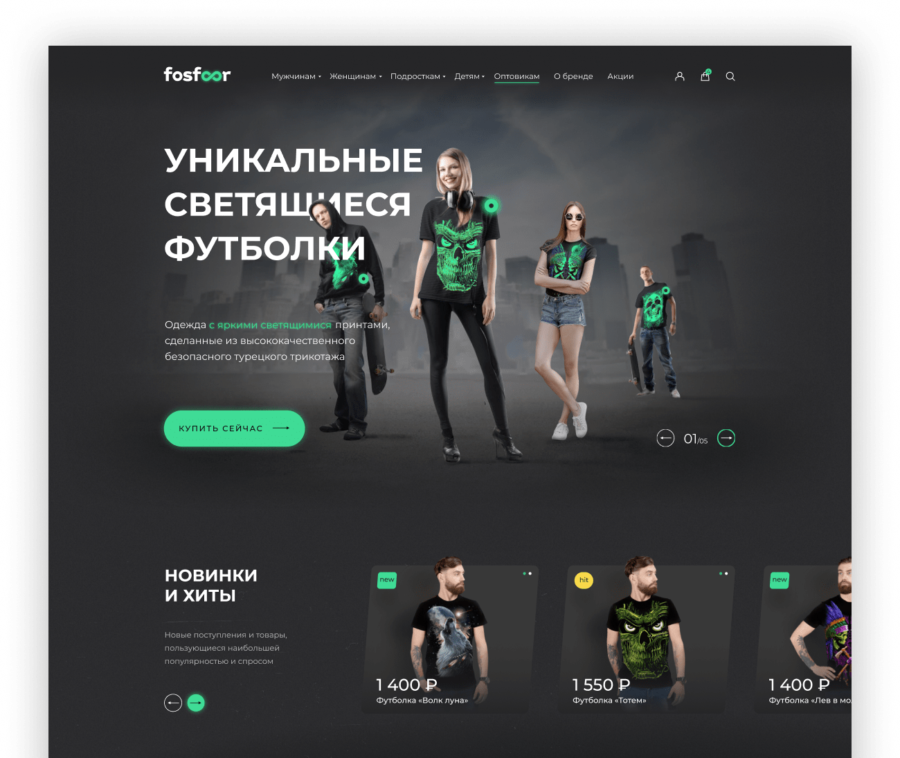 Интернет-магазин футболок собственного производства с уникальными светящимися принтами, предоставляющий возможность потребителям и оптовым клиентам совершать покупки разово и на постоянной основе