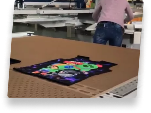 Для блока с преимуществами подготовлена 3D анимация вращающейся футболки. Для большего интерактива, при наведении на анимацию, активируется светящееся состояние принта футболки