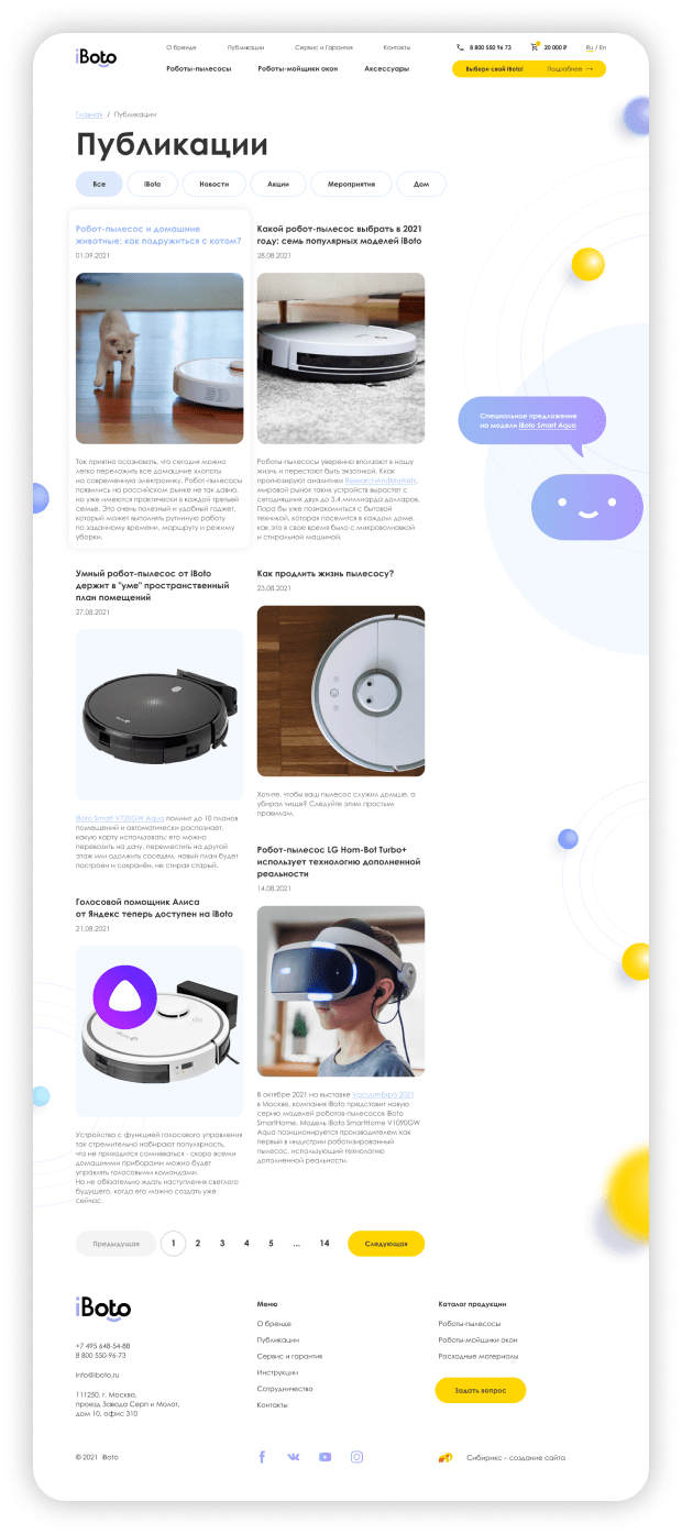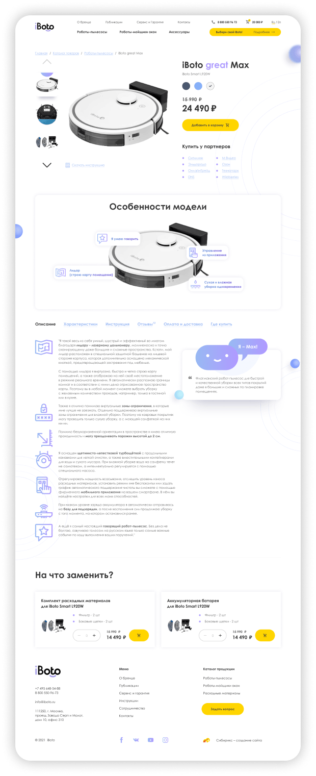 Интернет-магазин роботехники для дома от iBoto. Компания проектирует и производит недорогие роботы-пылесосы и мойщики окон. Главная идея бренда в том, что чистота, свежесть и гармоничное пространство для жизни человека так же естественны, как чистый воздух и вода в доме.