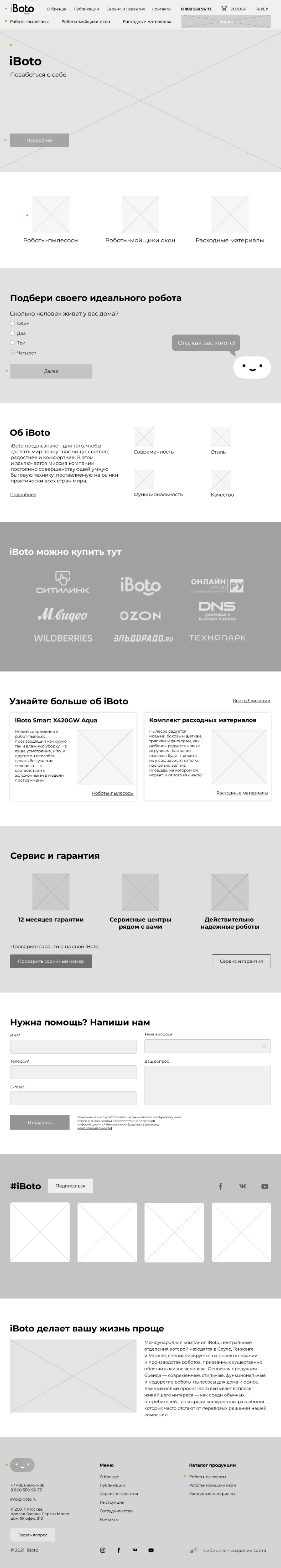 Уже на прототипе мы предусмотрели главную фишку сайта – интерактивный подборщик. Забавный фирменный персонаж помогает выбрать идеального робота именно для вашего дома.