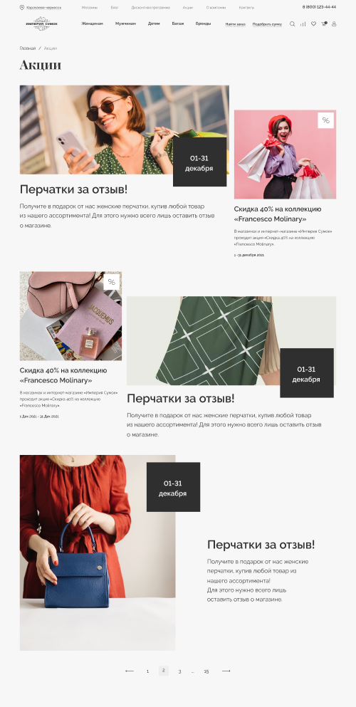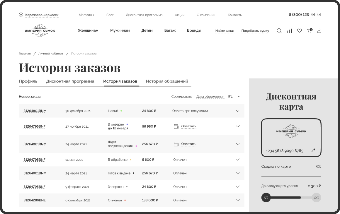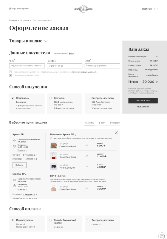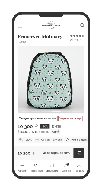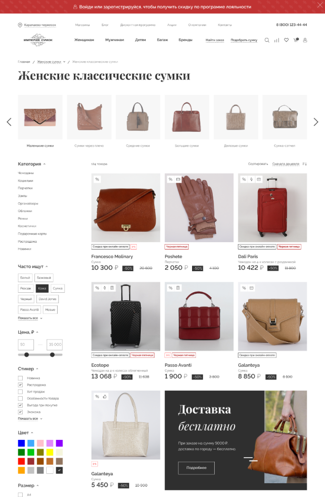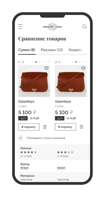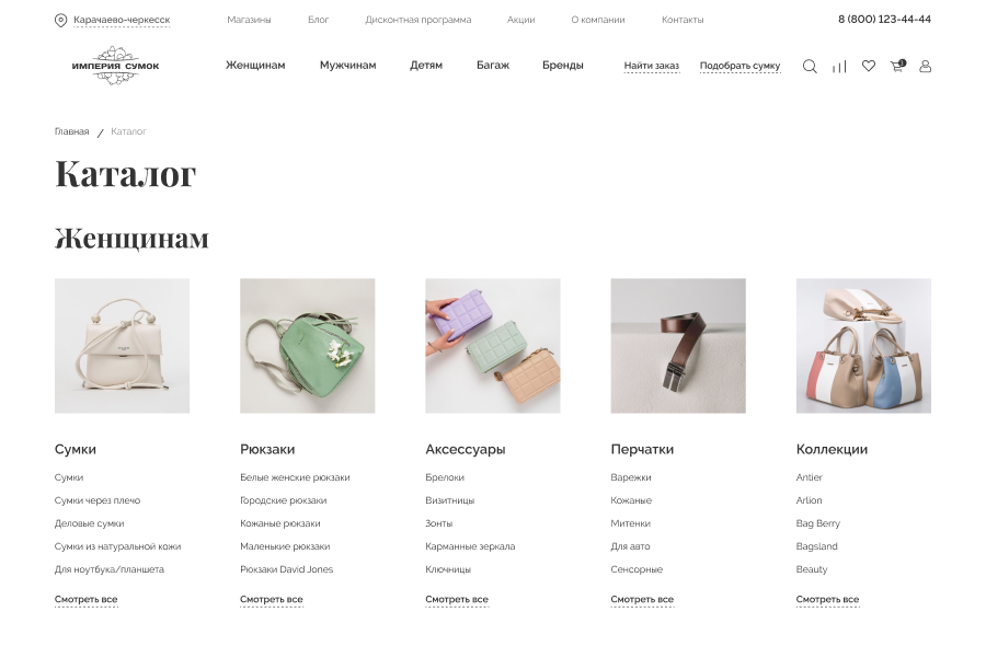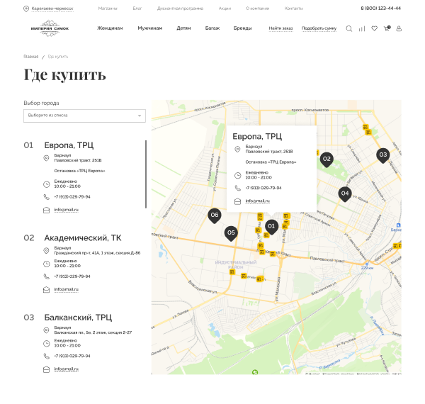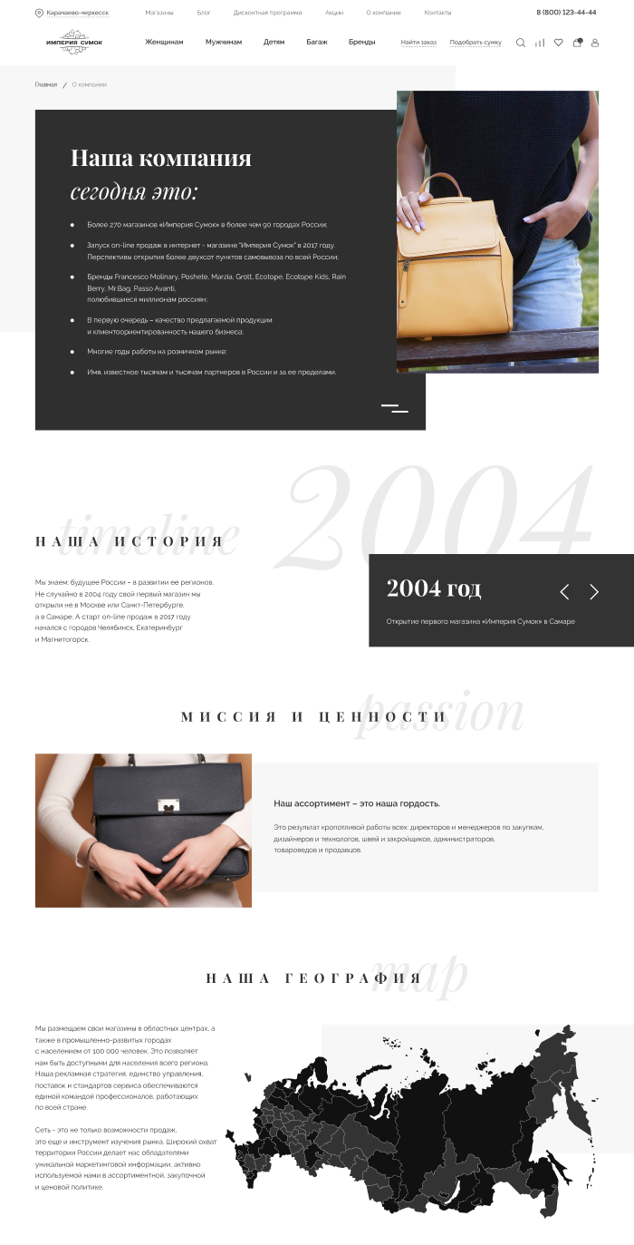 Империя сумок — российская сеть магазинов кожгалантереи, в которую входит более 270 магазинов более чем 90 городах. Нашей задачей было разработать новый интернет-магазин с актуальной информацией об ассортименте в каждой оффлайн-точке.