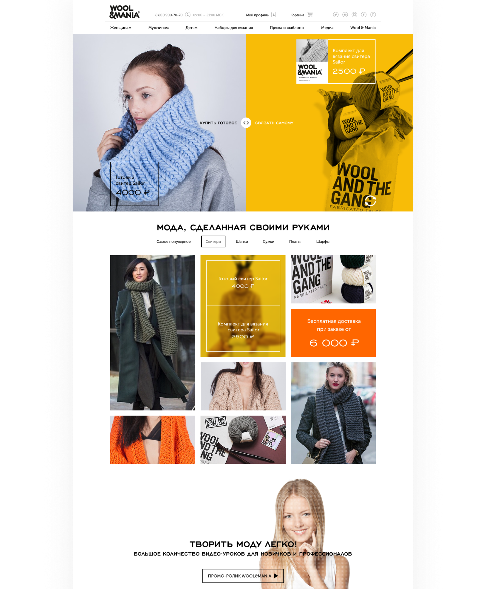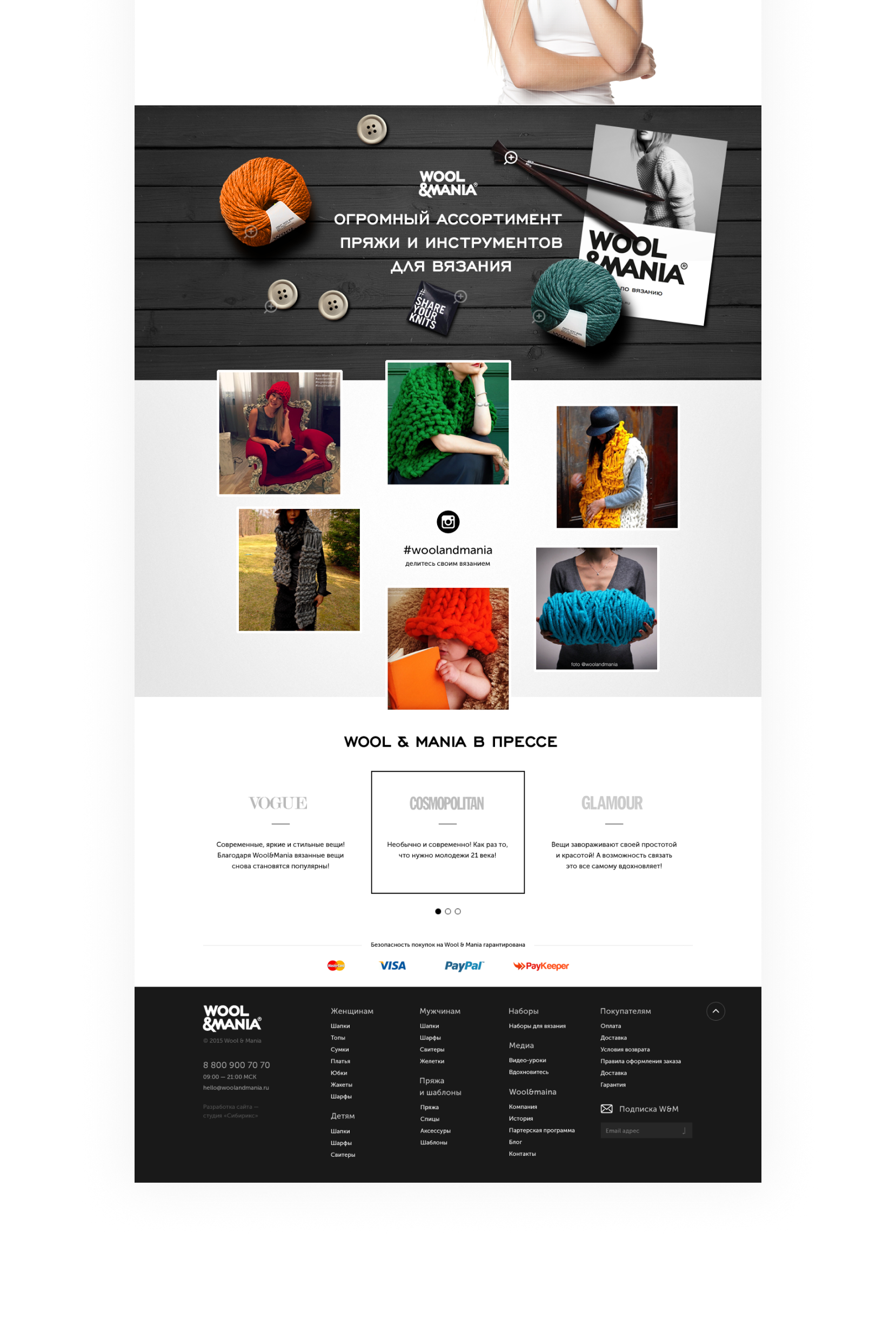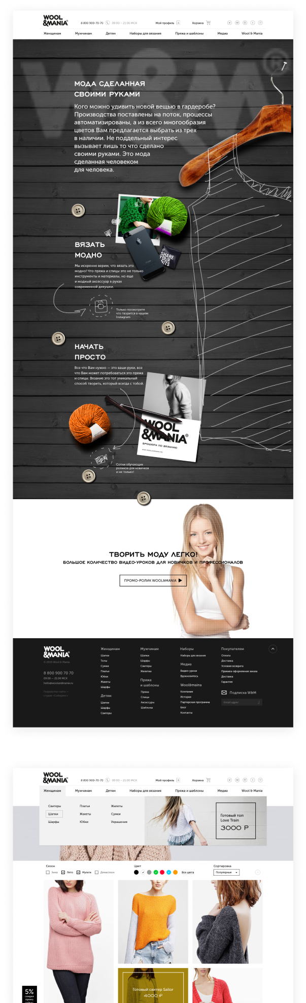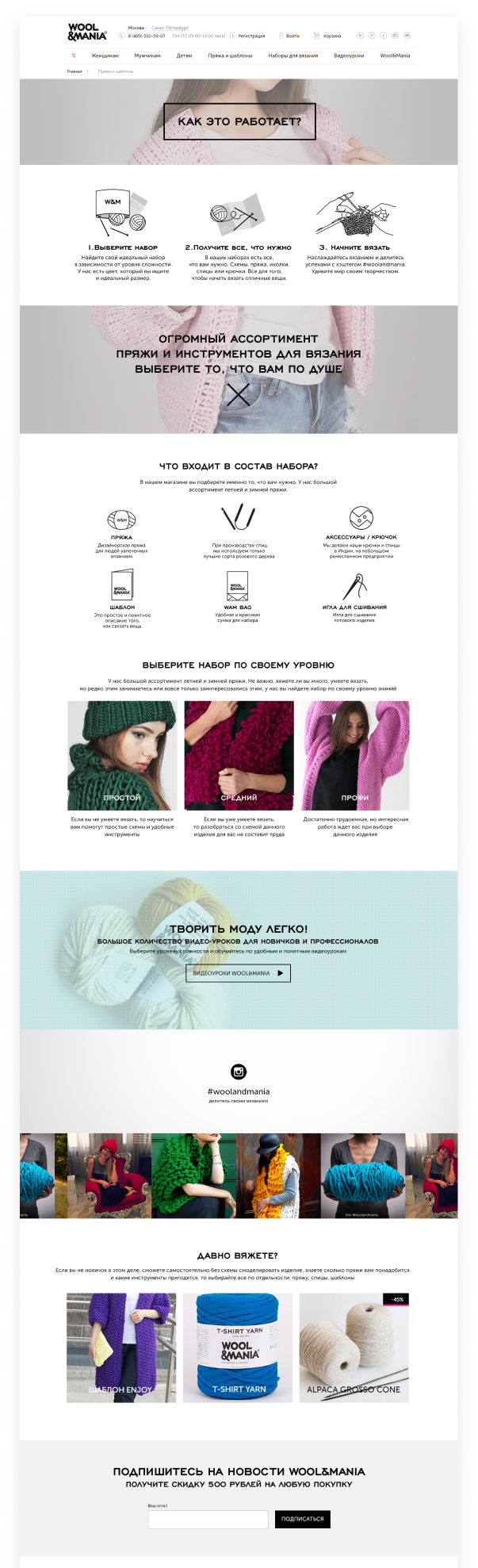 Wool&Mania — крутейший проект про спицы, пряжу и теплые кардиганы. Интернет-магазин вещей из пряжи и комплектов для вязания, получился взрослым и серьезным, но и в нем хватает приятностей.