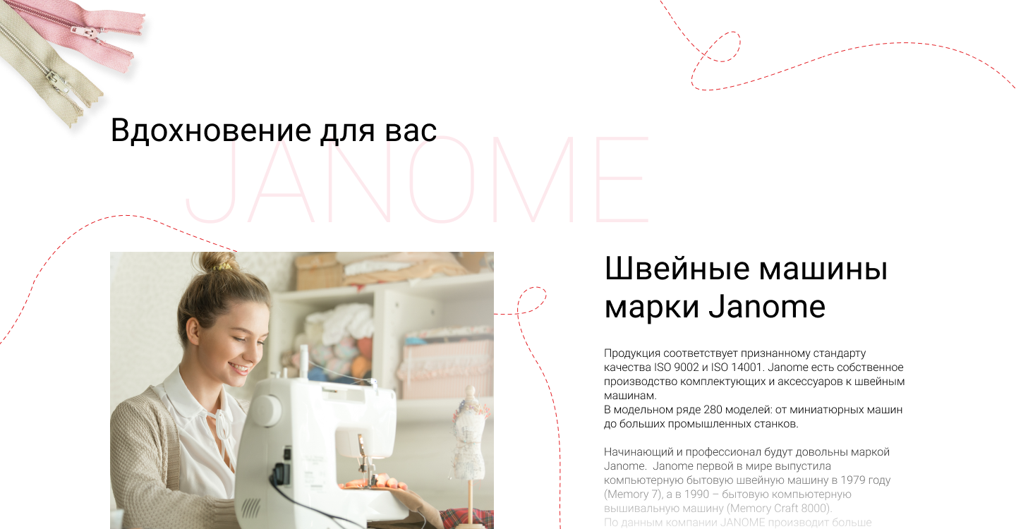 Janome — имя всемирно известного японского производителя швейной техники. За созданием сайта