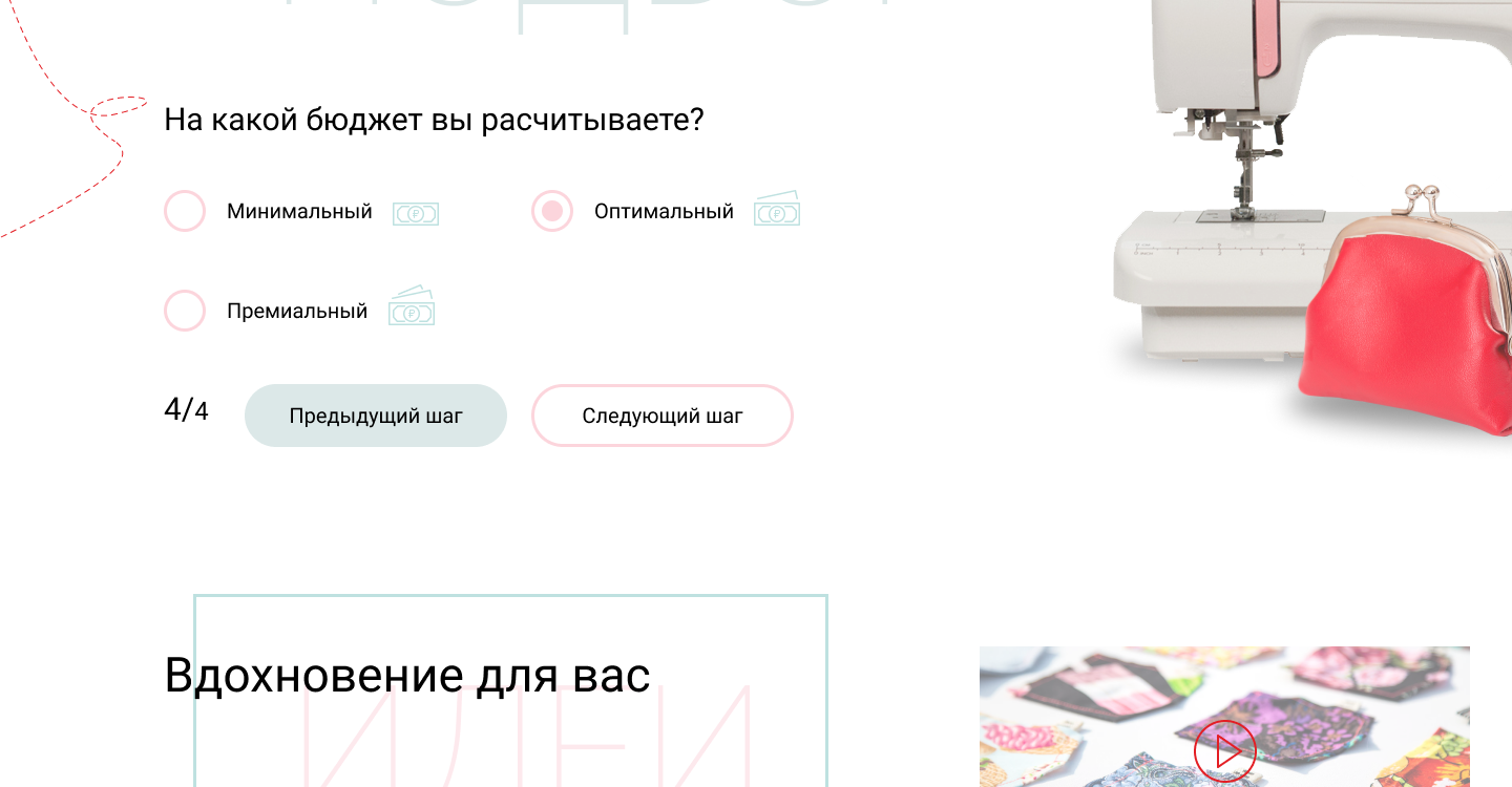 На главной странице сайта реализован подборщик продукции, способный в четыре шага выделить из огромного ассортимента те предложения, которые оптимально подходят под запросы клиента.