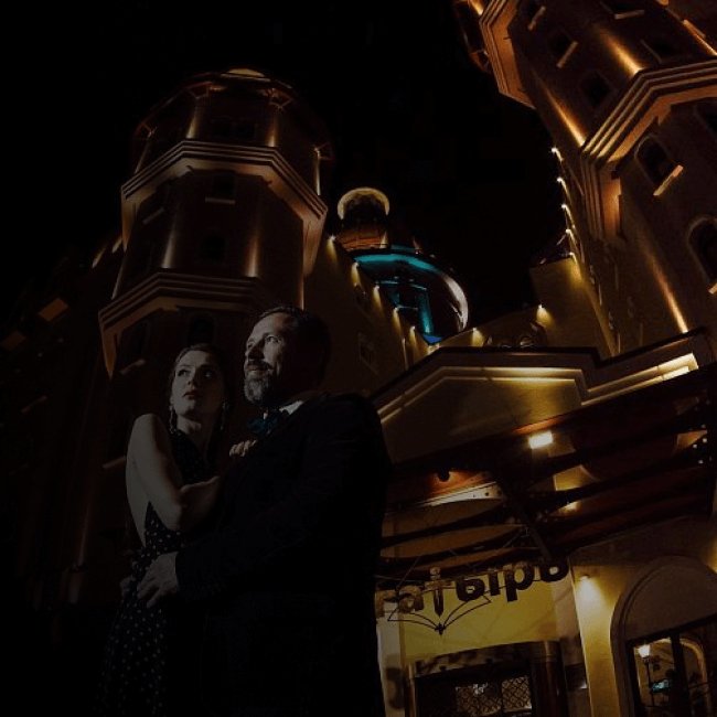 Берем дрон — снимаем отель в шикарной ночной подсветке. Рядом аэропорт, но нам можно.