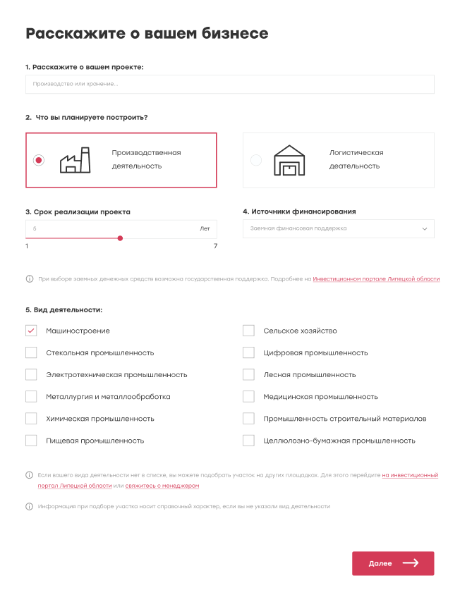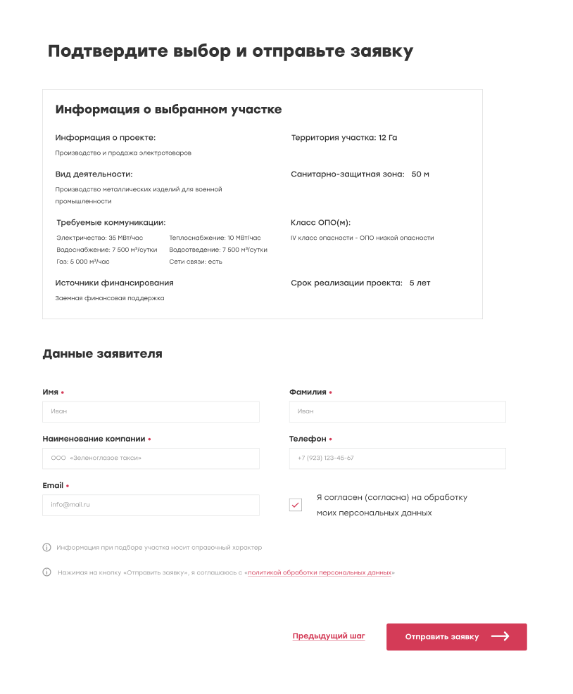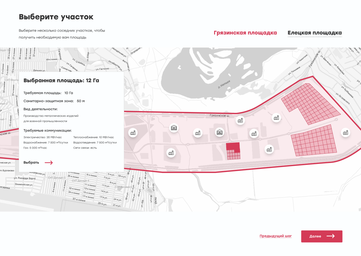 На интерактивной карте пользователь может выбрать свободный участок, либо посмотреть информацию об уже занятых территориях