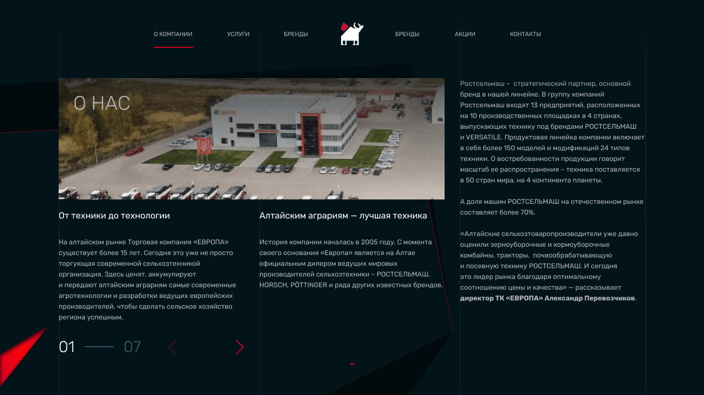 Создать имиджевый сайт с ярким и нестандартным для отрасли визуалом.