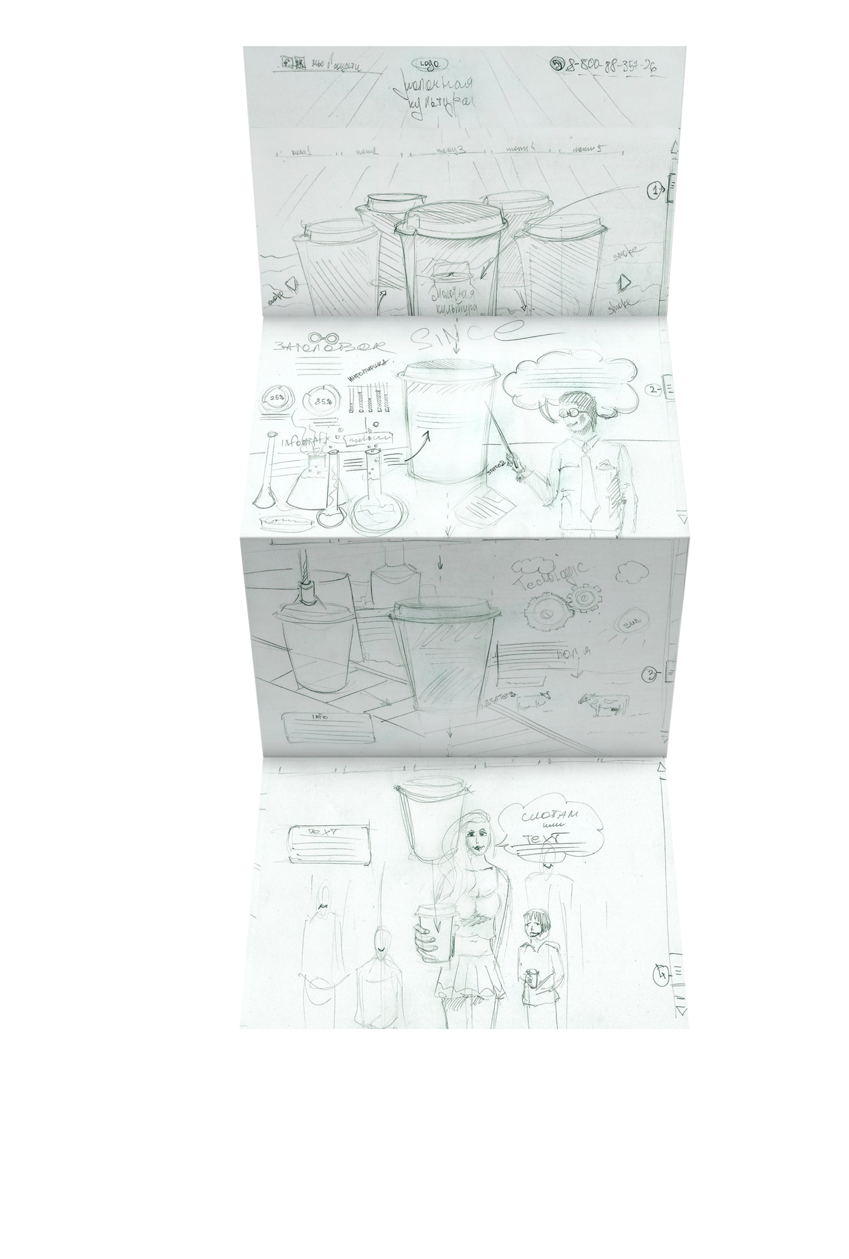 Стакан молока пролетает с первого экрана к последнему, попутно проходя через все этапы производства.