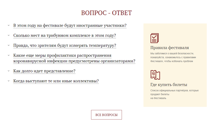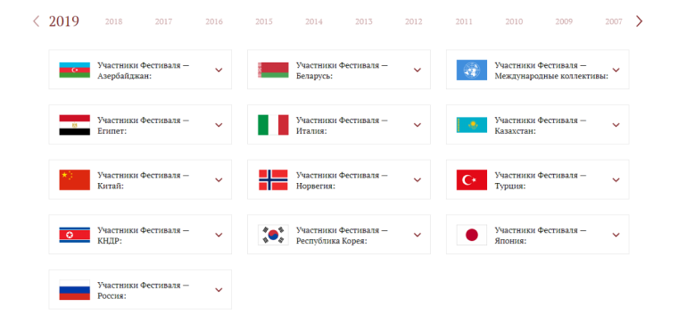 На странице с историей кратко рассказывается о фестивалях прошлых лет