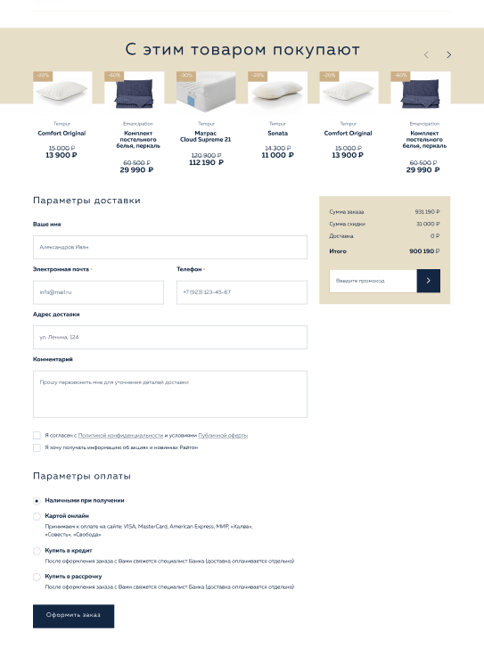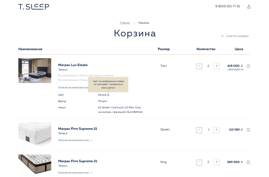 E-commerce проект. Удобный интуитивный интерфейс, который позволяет пользователям ознакомиться с ассортиментом, сравнить товарные позиции и легко совершить заказ.