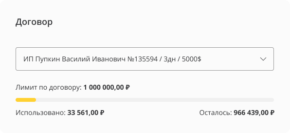 У одной компании может быть несколько типов договоров с Винком. В корзине предусмотрен функционал смены договора, влияющий на отображение кредитного лимита, валюты и цен.