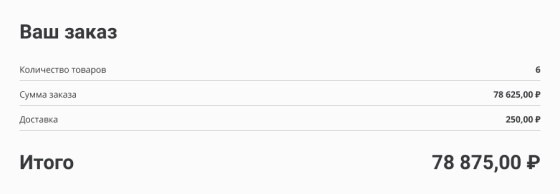 Для удобства пользователей мы разбили оформление заказа на три шага: ввод личных данных (информацию по компании подтягиваем из сервиса DaData), выбор доставки и выбор способа оплаты.